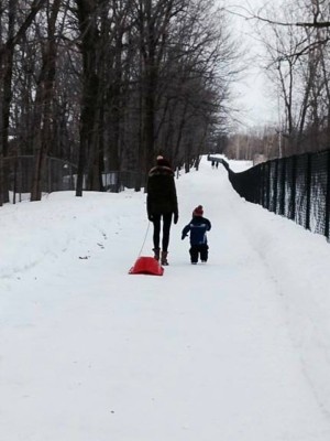 Je veux regarder les flocons tomber doucement à partir du confort de mon salon. Je veux passer des soirées à regarder une série télévisée (Dernière découverte : The OA!) après avoir prétendus tout l’après-midi que nous pourrions sortir… Je veux souper en famille le dimanche soir près du feu (la manette du foyer au gaz brise un peu le charme, mais on fait comme on peut!). Je veux lire un livre emmitouflée dans une couverte à motifs de moutons. La nuit, en me collant le plus possible, je veux voler la chaleur de mon amoureux. Et si je dois sortir…le silence de février, froid et réconfortant, nous entoure doucement dans nos ballades hivernales.